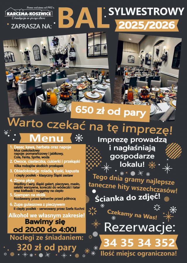 @karczmakoszwice Lista osób na naszą zabawę sylwestrowa powiększa się z dnia na dzień, nie zwlekajcie! #sylwester #zabawa #taniec #nowyrok #koniecroku #sylwestrowo #bal #2025 ♬ Zawsze Z Toba Chcialbym Byc… (Przez Miesiac 🙂 ) – Ich Troje
